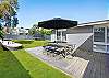 A modern central kitchen with stainless steel appliances, dishwasher and breakfast bar sits in the heart of the home with ample scope to update and add equity to this tranquil beach retreat, while a sun-drenched BBQ deck offers a lovely space to recline with a wine, having a bbq and overlooking the lush garden after balmy days on the beach as the kids entertain themselves in this fully fenced haven.