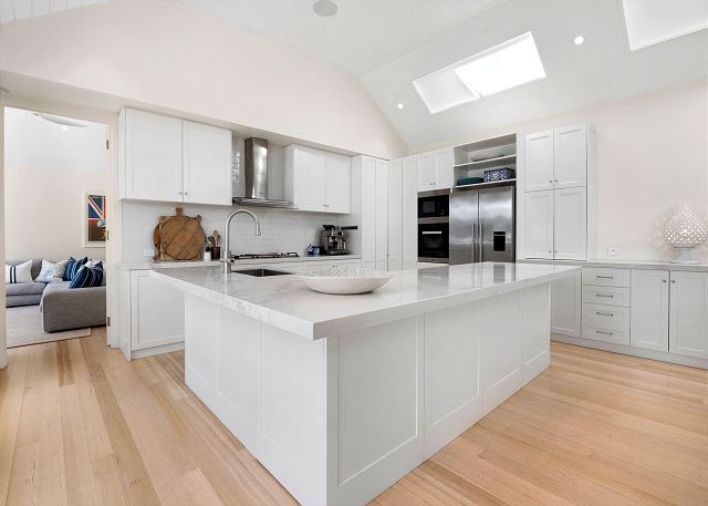 Full Kitchen, Refrigerator, Microwave, Toaster, Cookware, Wine fridge , bbq utensils, blender, kettle, Oven, dishes, Wine glasses