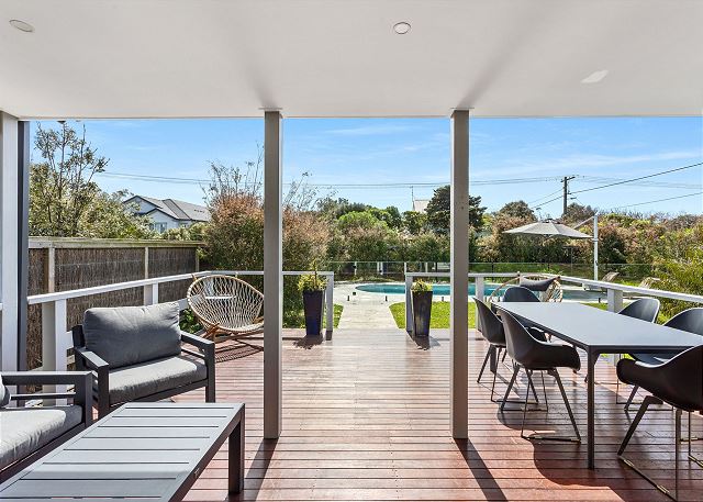 Patio, BBQ Grill, Private Pool, Beach, Large yard , pool, backyard, fully fenced, Outdoor Dining Area, Sun Loungers