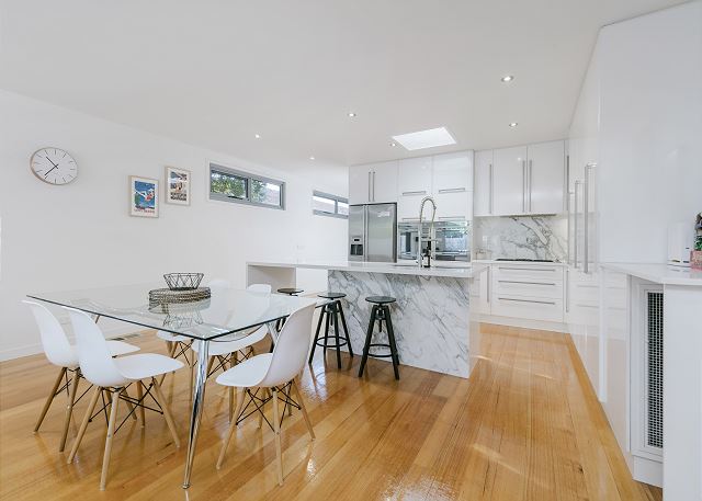 Full Kitchen, Refrigerator, Coffee Maker, Ice Maker, Microwave, Toaster, Cookware, bbq utensils, blender, kettle, Oven, mini fridge, dishes, Wine glasses