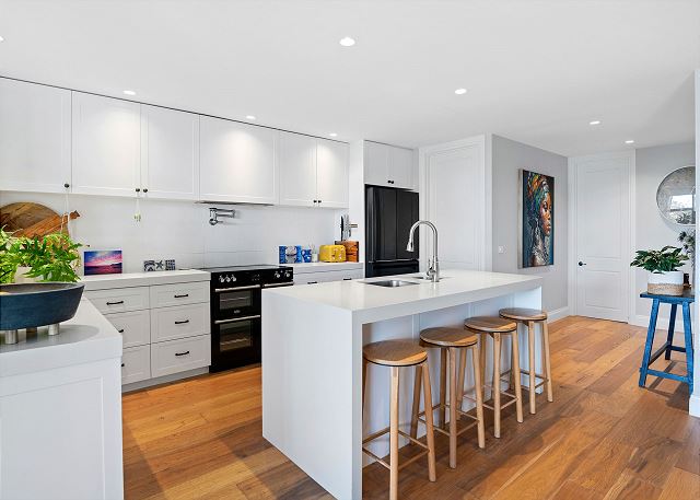 Full Kitchen, Kitchenette, Refrigerator, Coffee Maker, Microwave, Toaster, Cookware, bbq utensils, blender, kettle, Oven, dishes, Wine glasses