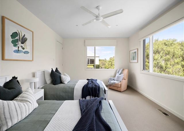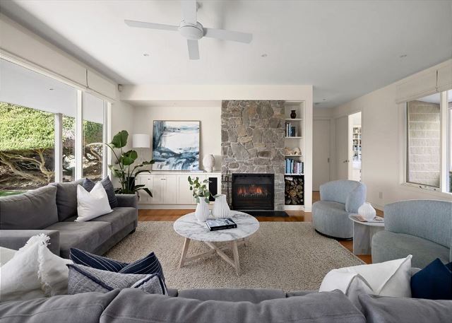 This elegant home has sweeping northerly views across the valley towards Sorrento Golf Club offering a sense of seclusion and natural beauty. Open and airy with cross ocean and bay breezes permeating the spaces and deep verandahs sheltering from the harsh summer sun, this well-proportioned home enjoys an expansive north facing living and dining area with an open fireplace encased with natural granite and shaker style cabinetry, a travertine kitchen with 900mm Ilve cooking appliances, and a relaxed second living area. The superb main bedroom captures the warming sun while protected by an original Moonah tree, featuring verandah access, a bank of wardrobes and a fully tiled ensuite with travertine vanity. An executive study, with its custom library, can be an additional fourth bedroom for guests with an adjoining powder room. A separate wing provides two generous bedrooms – each with built in robes, a neutral toned bathroom and fitted laundry with access to a utility courtyard/wood store. The long front and rear verandahs are fabulous places to celebrate family occasions where children can play on the manicured lawn, climb the Moonah tree, or explore the grounds to discover the tiered vegie garden, the north/south mod grass tennis court, the hidden seating areas, the ripening olive trees or the maze like trails that evoke curiosity and adventure. Welcomed by a circular driveway with two street crossovers, this quality-built home is appointed with ducted heating, ceiling fans. A comfortable walk to Sorrento Village, the farmer’s market in David MacFarlan Reserve or beyond to family friendly Sorrento front beach, catch a wave at Portsea Surf Beach or Sorrento Ocean Beach, or enjoy the various splendours of the peninsula from prestigious golf courses, wineries, health retreats and nature walks. Bedrooms Bedroom 1 has 1 x King (sleeps two) Bedroom 2 has 1 x King (sleeps two) Bedroom 3 has 1 x Queen (sleeps two) Bedroom 4 has 3 x Double bed (sleeps six) Guests have access to the full house and garden Strictly no schoolies bookings or parties allowed Pets by request Toilet paper and provisions for the first night only. BYO beach towels for spa and beach. Once the booking is confirmed and paid for, you will receive full details on how to access the property Features we love - Moments’ walks to Sorrento Bay beaches, stroll to Sorrento Village, great backyard and grounds for entertaining, free wireless internet, this property has everything you need for a beautiful holiday. Internet: Free Unlimited Wi-Fi Bathroom: 2 Car parking: 2 off street The Mornington Peninsula National Park is also close by, offering spectacular cliff top walking tracks. Beaches Cafes National Parks Watersports Wineries and gourmet food This house is Perfect for: Holidays with friends Corporate retreats Family beach holiday Jellis Craig Short Stays only choose properties that we would like our own families to stay in on holidays. Policies: - No smoking - No events, parties or large gatherings - Guest Registration and Photo ID may be required and confirmation of booking may be subject to approval by management. - Jellis Craig Short Stays require you to give them your credit card details to hold as security for while you stay. For full details, please read the house rules.